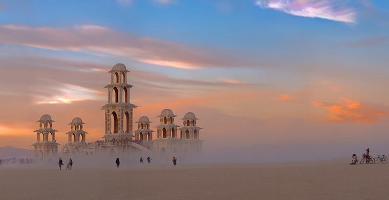 Каждый сентябрь в течение недели 70 000 человек со всего мира живут одной большой общиной посреди пустыни Блэк-Рок в штате Невада. Они сами строят лагеря и необычные инсталляции, готовят еду, устраивают перформансы, катаются на велосипедах сквозь песчаную бурю. В Блэк-Рок-Сити нет денег и экономические отношения базируются на обмене, мобильными телефонами практически невозможно воспользоваться в силу удаленности от цивилизации, а за чистотой следит каждый житель, аккуратно подбирая любой предмет мусора, встреченный на пути.