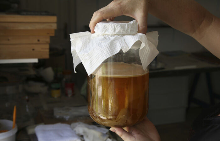 Обычно, напиток стоял у всех на кухне в больших банках. А вместо крышки использовали парочку слоев марли, поскольку закваска состояла из живых микроорганизмов, которые нуждались в кислороде. Сейчас чайный гриб снова возвращается в моду, правда, под другим названием - «комбуча».