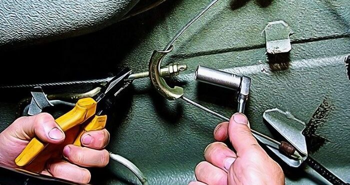 - Ручник не удерживает автомобиль в состоянии покоя даже на небольшом уклоне. При этом до того, как дойти до упора, он издаёт не привычные два-три, а шесть-семь щелчков. У вас растянулся тросик ручника, и его нужно просто подтянуть. Для этого необходимо подлезть под машину, найти регулировочный болт ручника и подтянуть его так, чтобы после трёх щелчков ручник смог удержать ваш автомобиль на склоне;