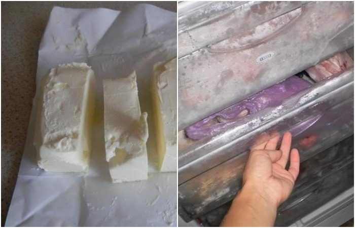 Интересно, что с кулинарной точки зрения, замороженное сливочное масло гораздо удобнее свежего. Если использовать его в выпечке, оно даст более рассыпчатую и слоеную текстуру, которая так важна для песочного теста, слоек и пр. Продукт из морозилки гораздо проще натереть на терке, оно медленно тает и не остается на руках. Поэтому профессиональные повара часто хранят масло в ресторанах именно так.