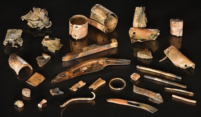 Команда археологов полагает, что найденный в реке сверток, вероятно, первоначально содержался либо в деревянном ящике, либо в матерчатом мешке, который впоследствии сгнил в воде. Среди личных вещей были найдены обломки меди и различные инструменты из бронзы, полезные в повседневной жизни – например, шило, зубило, нож, долото, маленький меч, наконечники стрел.