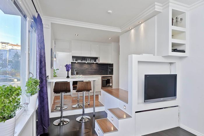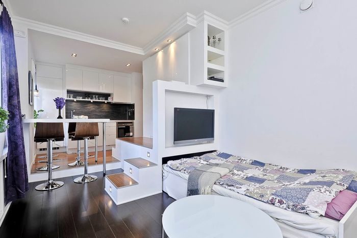 Интерьер крошечной квартирки должен быть максимально лаконичным, стильным и практичным. Как грамотно разделить пространство на функциональные зоны, но при этом избежать чувства тесноты?