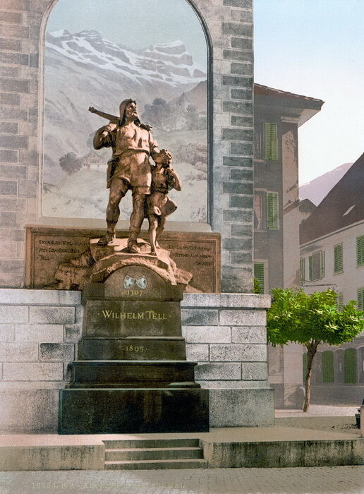 Памятник Вильгельму Теллю, легендарному символу швейцарской независимости, чье реальное существование пытаются доказать энтузиасты
